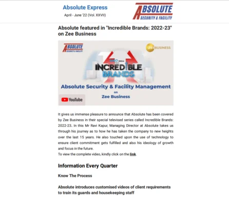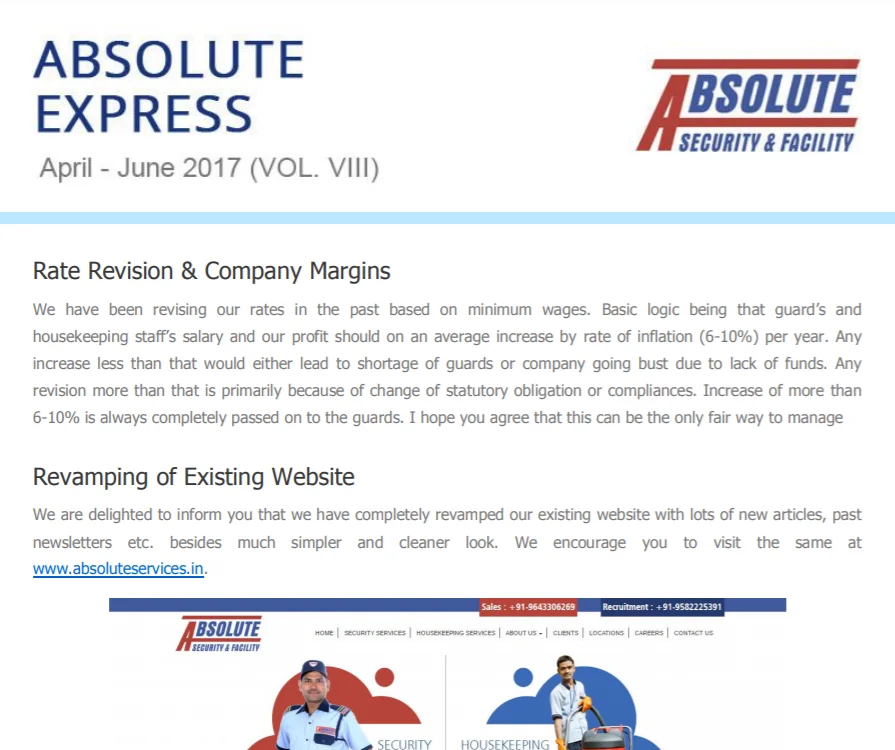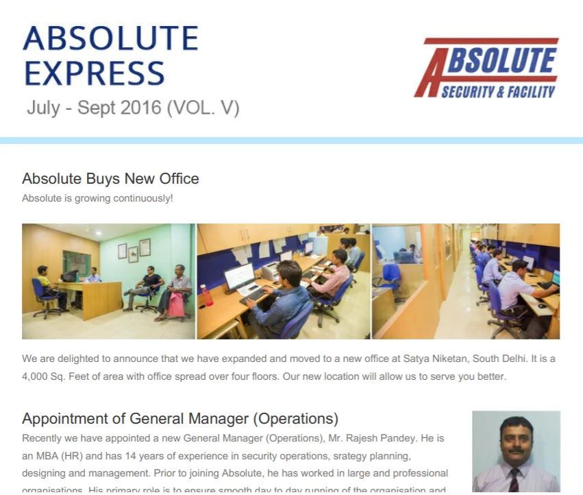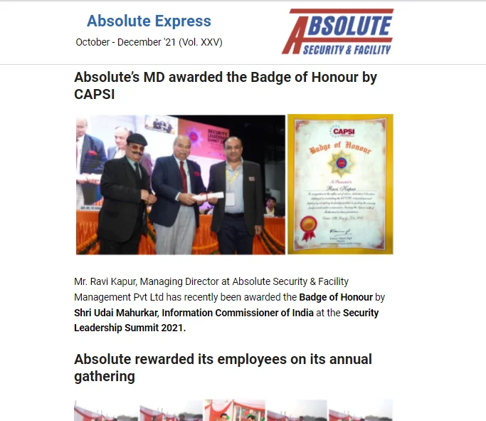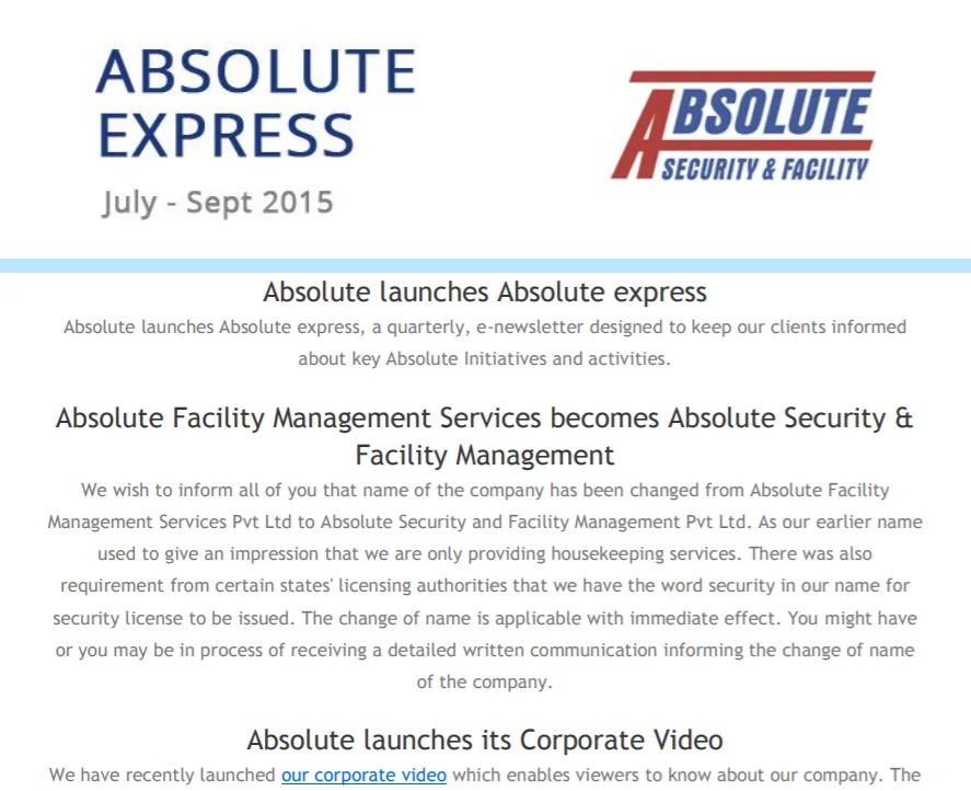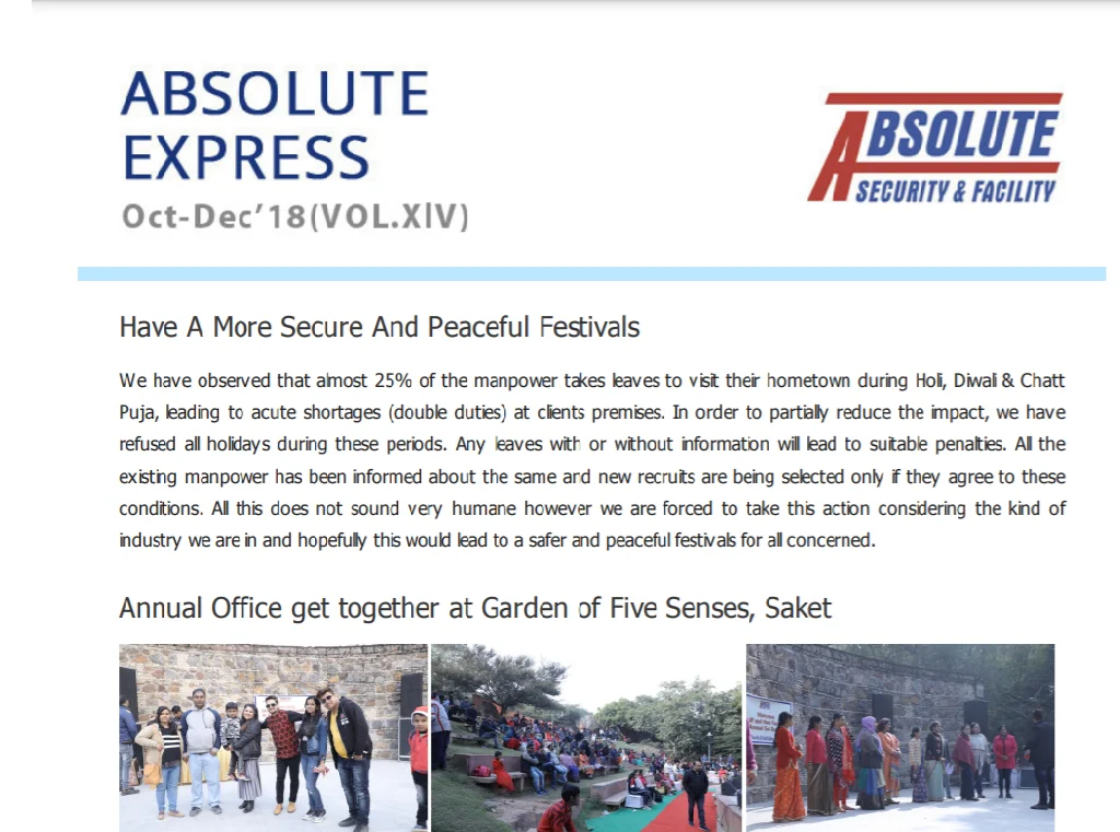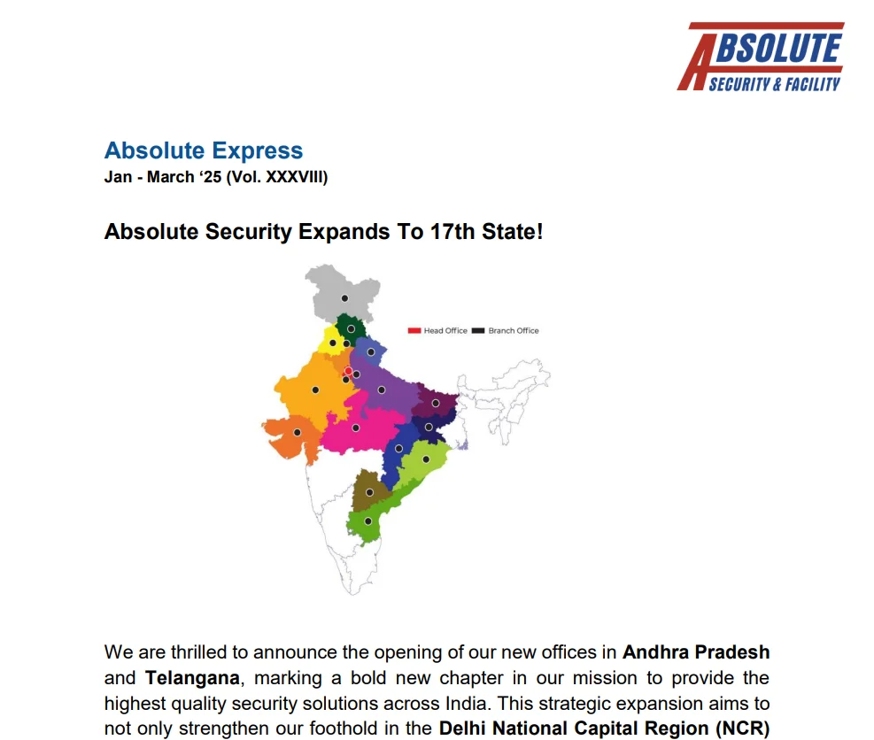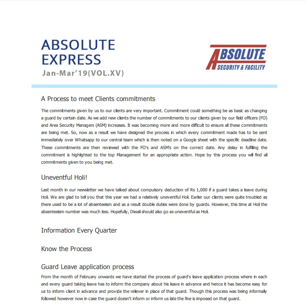 Access our year-wise newsletters featuring key updates, achievements, and insights from Absolute Security & Allied Services Pvt. Ltd. Stay informed with our corporate milestones and industry highlights.