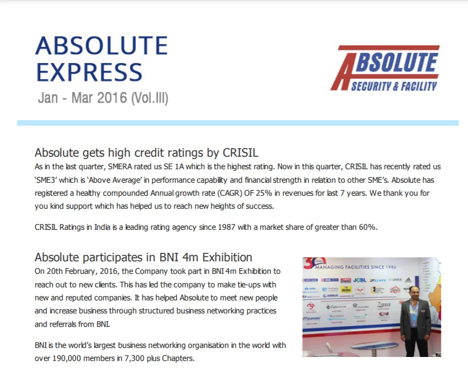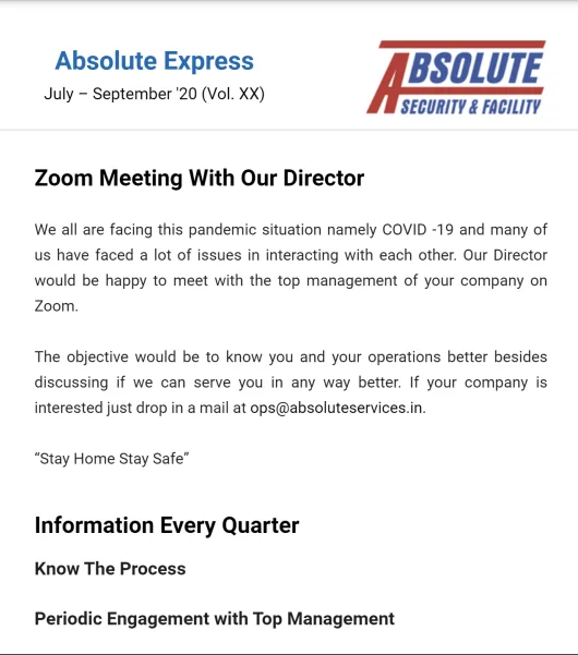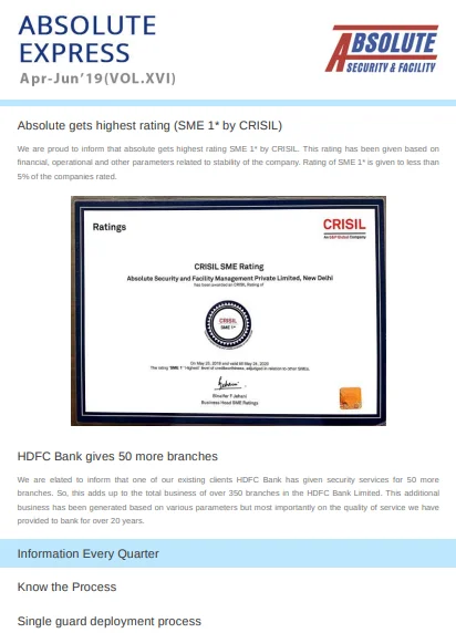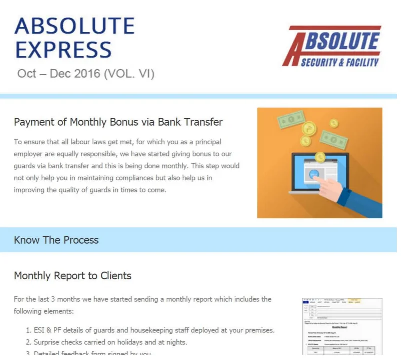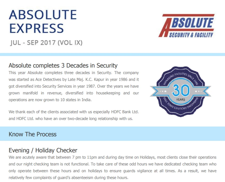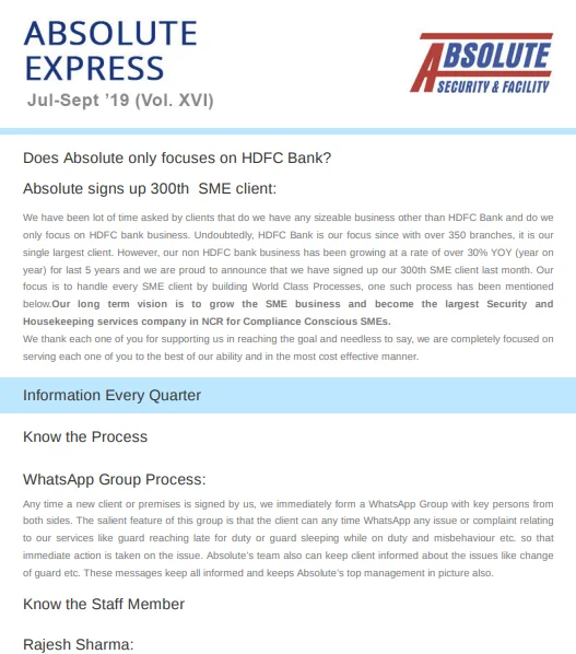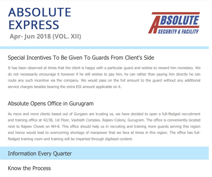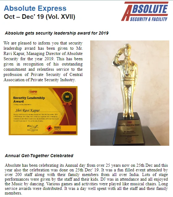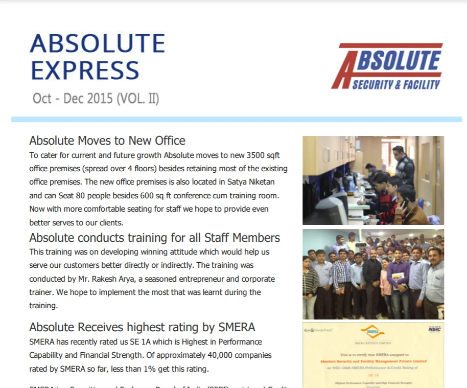 Access our year-wise newsletters featuring key updates, achievements, and insights from Absolute Security & Allied Services Pvt. Ltd. Stay informed with our corporate milestones and industry highlights.
